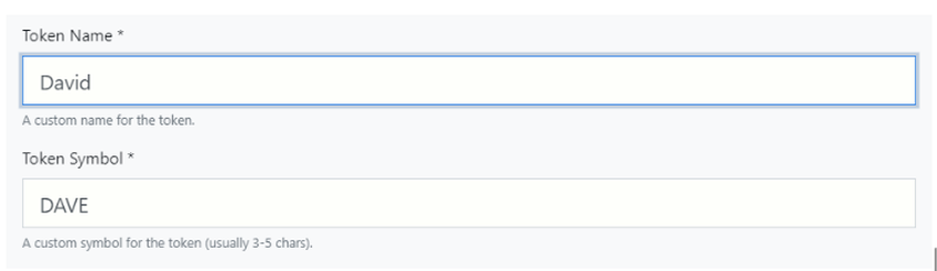 Użytkownik musi również wprowadzić żądaną nazwę i symbol tokena.