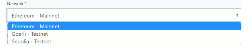 Jeśli użytkownik wybierze Ethereum, może wdrożyć token na mainnecie, lub testnecie Goerli oraz Sepolia.