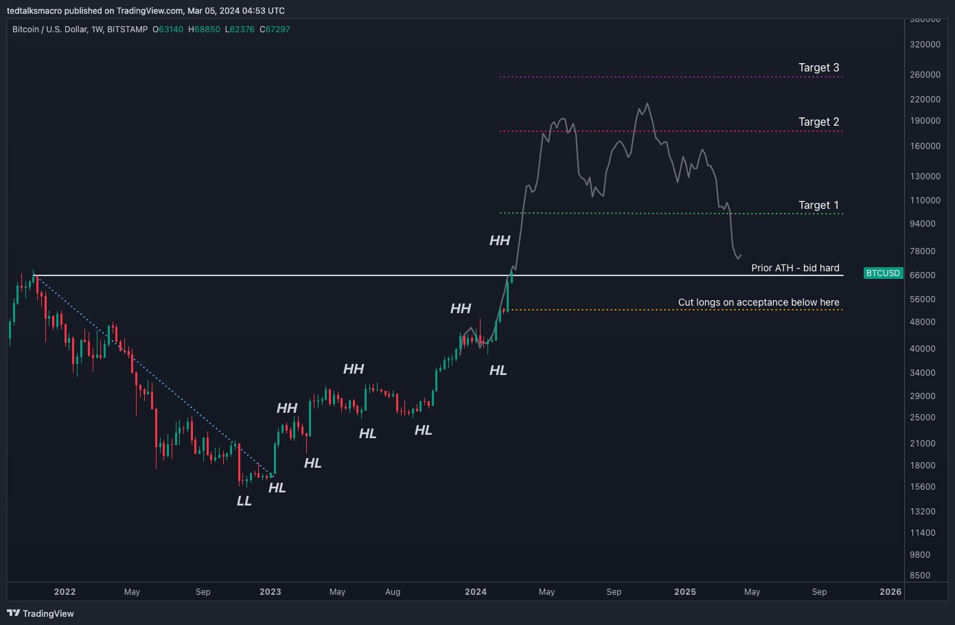 Czy hossa na Bitcoina już się skończyła? Anality kryptowalut z X, Ted, jest przekonany, że nie. Jak przewiduje w swoich postach, przed nami jeszcze wiele okazji do wzrostu.