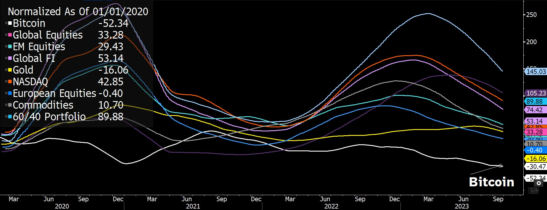 “Wygląda na to, że wkrótce odnotujemy znaczny wzrost zmienności na wszystkich rynkach, biorąc pod uwagę kierunek, w jakim zmierzają rentowności, USD i globalna M2. Pomimo tego, co nas czeka, w ciągu ostatnich lat nastąpiła duża zmiana w profilach zmienności globalnych aktywów w stosunku do Bitcoina.”