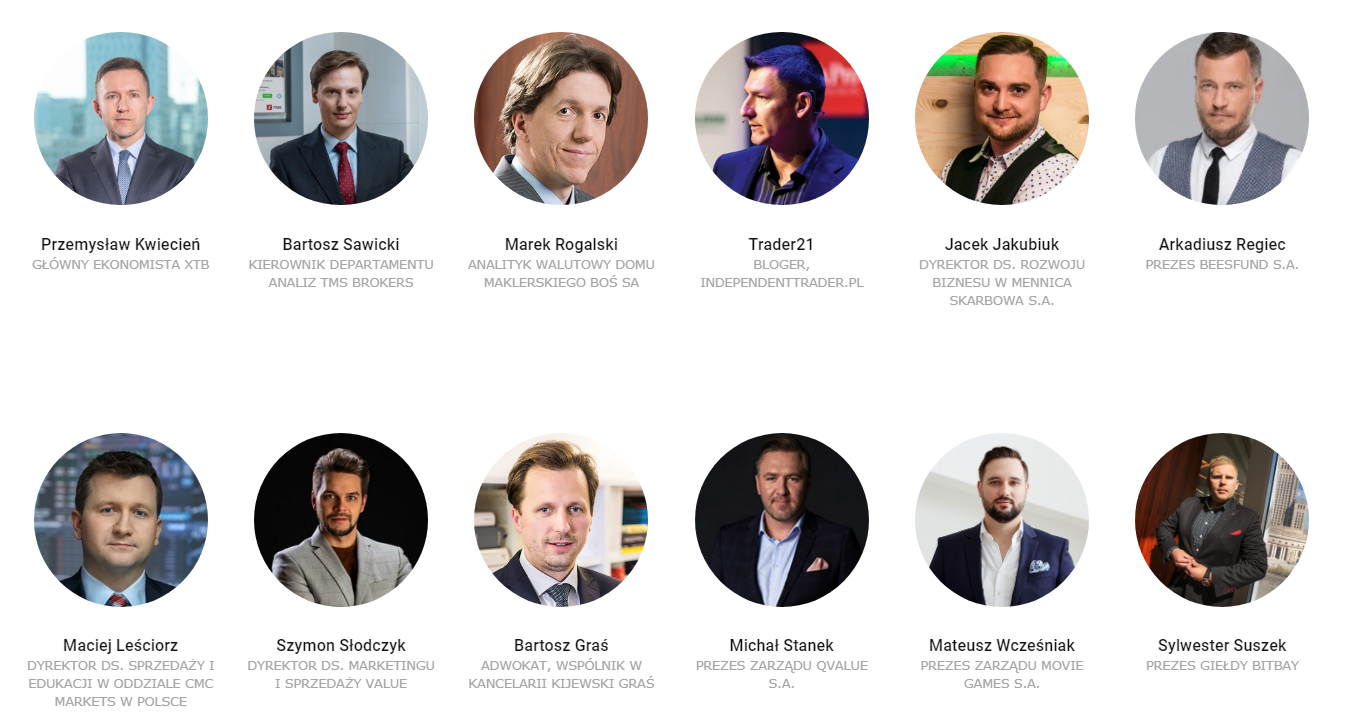 Pośród 30 prelegentów zaproszonych na konferencję znajdziemy doświadczonych analityków, inwestorów, prezesów spółek giełdowych i biznesmenów, w tym również przedstawicieli świata kryptowalut. Będą to między innymi: