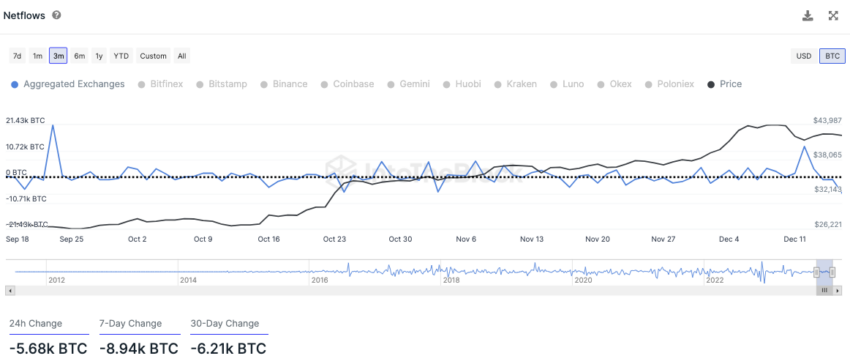 Więcej BTC jest obecnie wycofywanych z giełd niż deponowanych