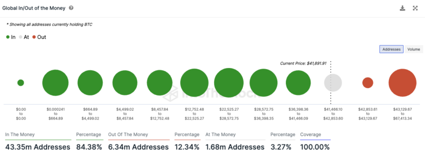 Jednak przytłaczająca większość, około 84%, osiąga zysk przy obecnej cenie około 42 000 USD.