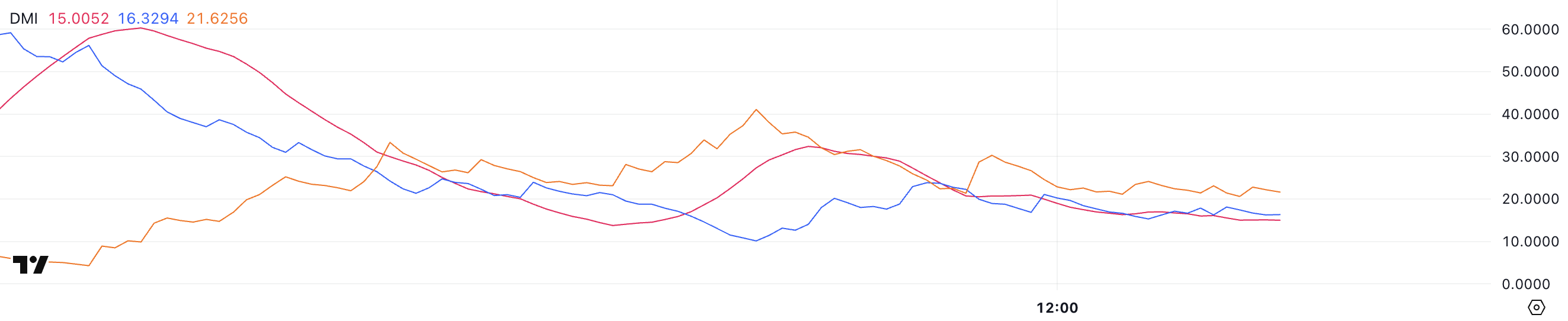 Wraz z tym, linie +DI i -DI dostarczają wglądu w presję kupna i sprzedaży. Obecnie +DI Pi Network wynosi 16,3, spadając z ponad 60 kilka godzin temu, co wskazuje na znaczną redukcję presji zakupowej PI. Z kolei -DI wynosi 21,6, wzrastając z 4,2 przy uruchomieniu, co pokazuje rosnącą presję sprzedażową.