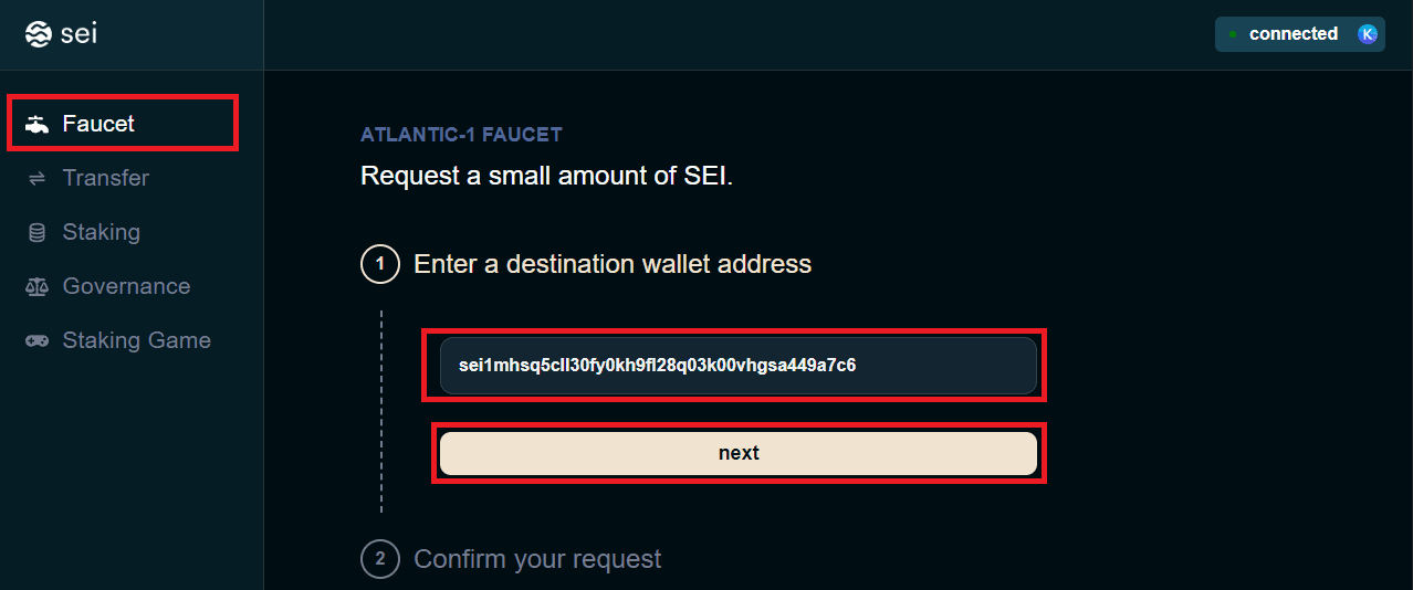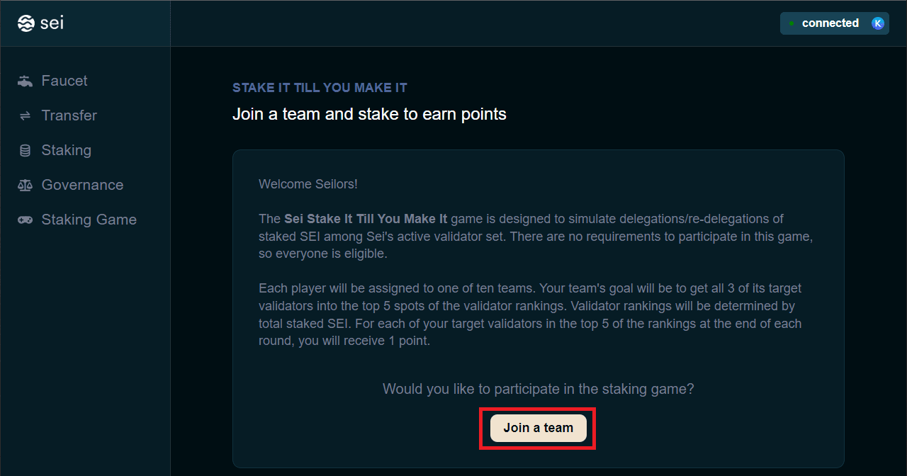 - Dodaj sieć testową Sei. Podłącz portfel na stronie internetowej.