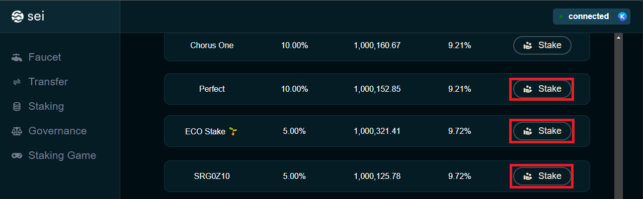 Twoim zadaniem jest pomóc oddelegowanym walidatorom dostać się do pierwszej piątki listy rankingowej. Im więcej tokenów oddelegowanych do walidatorów, tym wyższa jest ich pozycja w rankingu. Jeśli Twój walidator znajdzie się w pierwszej piątce, otrzymasz punkty.