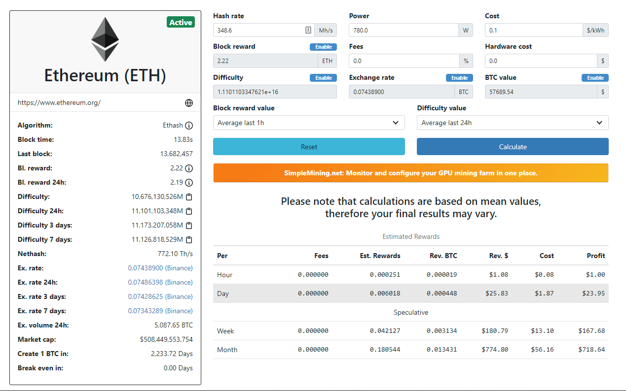 Dla przykładu koparka 6x 3060Ti kosztuje około 30 000 PLN i produkuje 348 Mh/s na Ethash. Według WhatToMine jesteśmy w stanie kopać około 0,1805 ETH miesięcznie, co przynosi nam około 774,80 USD (3234 PLN) profitu.