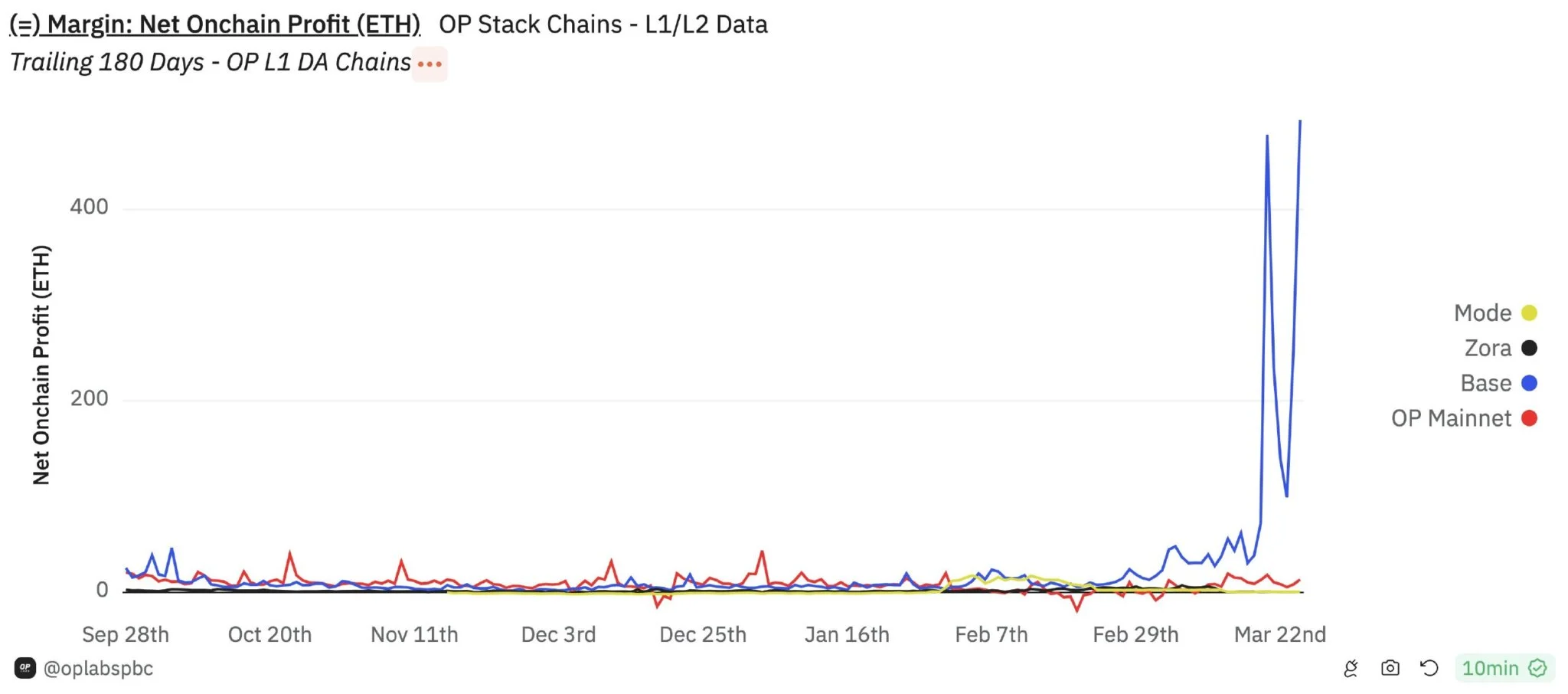 Nawiasem mówiąc, większość prowizji za transakcje w sieci Base trafia do giełdy kryptowalut Coinbase. Przykładowo, we wtorek użytkownicy zapłacili 494 ETH za transakcje w tej sieci. Coinbase otrzymał 420 Etherów z tej kwoty, co przełożyło się na 1,49 miliona dolarów.