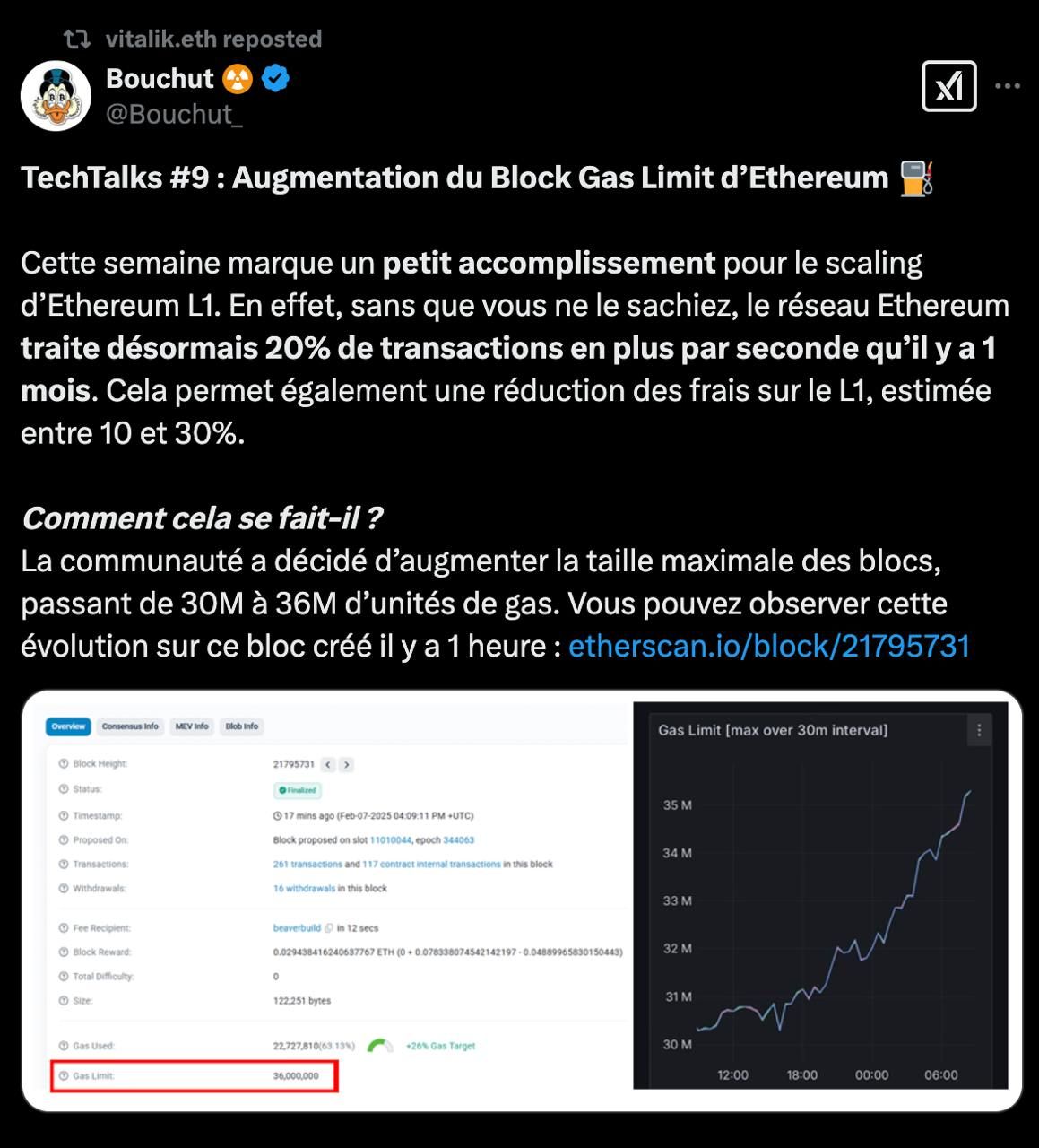 Vitalik Buterin ogłosił zwiększenie limitu gazu w sieci Ethereum. Rynek zareagował pozytywnie, a cena ETH wzrosła.