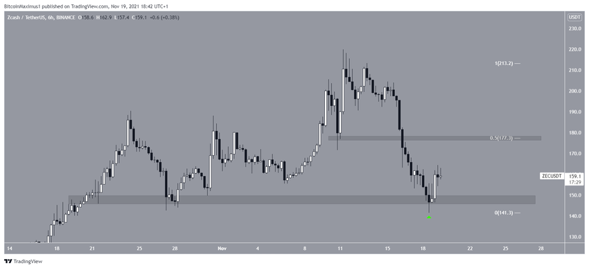 ZEC spada od 11 listopada, kiedy osiągnął najwyższy poziom 220 USD. Doprowadziło to do najniższego poziomu 141 USD w dniu 18 listopada (zielona ikona). Następnie token zaczął się odbijać.