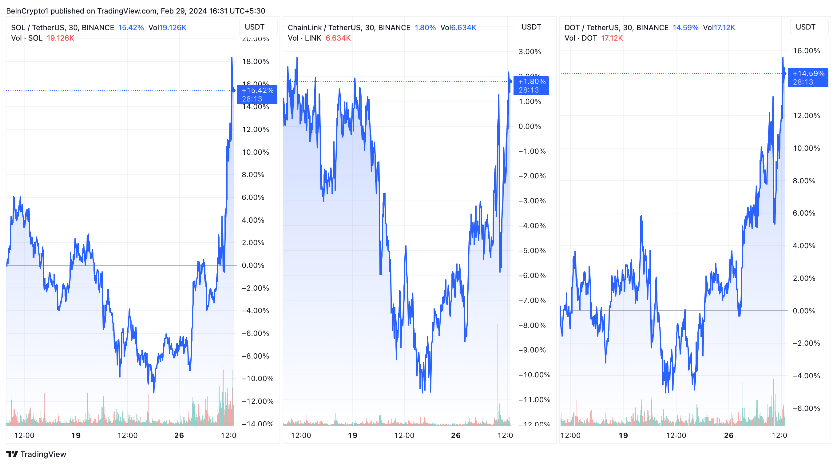 3 kryptowaluty: Solana, Chainlink i Polkadot na czele altcoinów