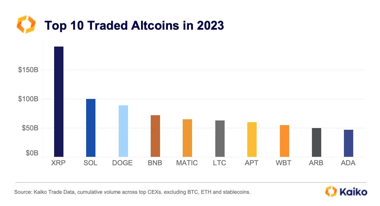 XRP stał się również najpopularniejszym altcoinem pod względem wolumenu obrotu z wyłączeniem Ethereum. Kolejne dwa miejsca w rankingu zajęły Solana i Dogecoin.
