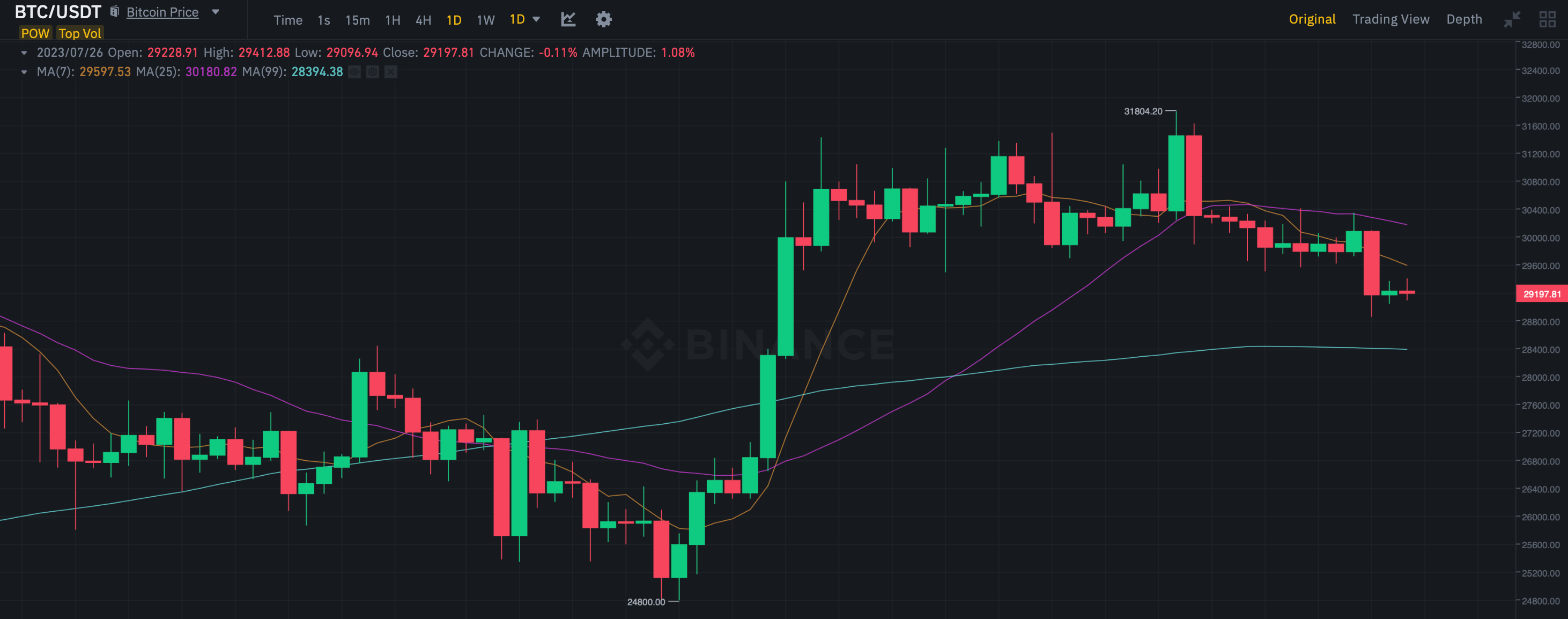 W rezultacie Bitcoin był w stanie przebić się z lokalnego dna na poziomie 24 800 USD do szczytu 31 804 USD w ciągu półtora miesiąca.