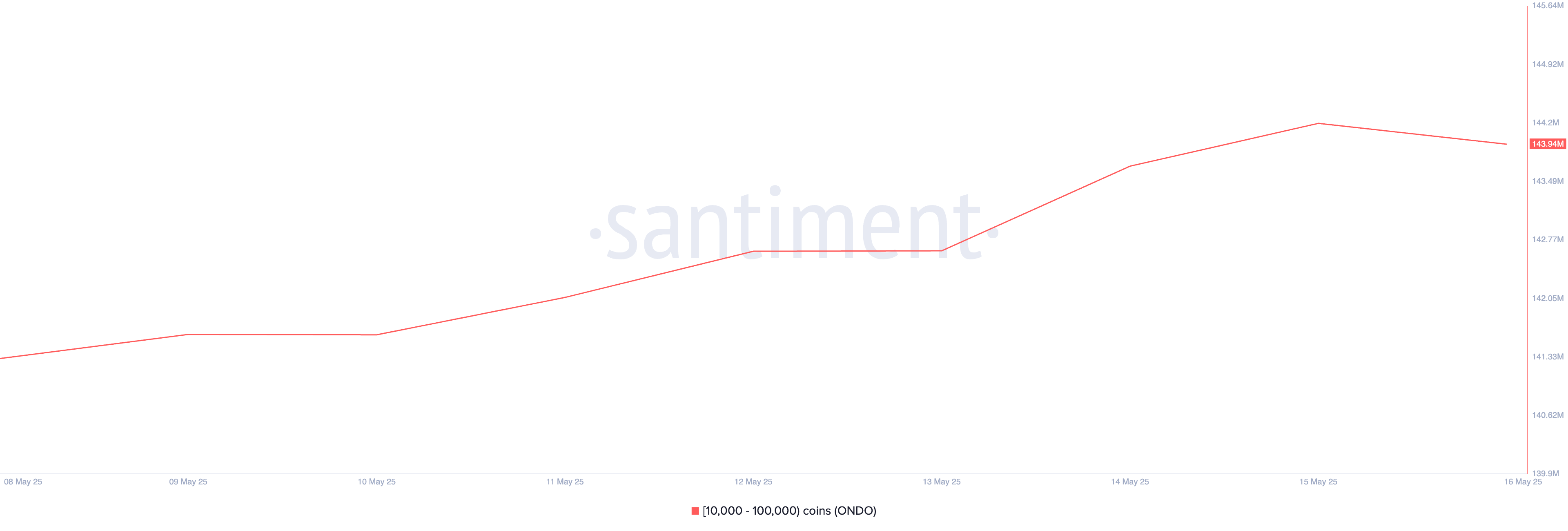 W tym tygodniu token real-world asset (RWA) ONDO zyskał większą uwagę wielorybów. Według danych od Santiment, adresy wielorybów posiadające od 10 000 do 100 000 tokenów nabyły łącznie 2,63 mln ONDO w ciągu ostatnich siedmiu dni.