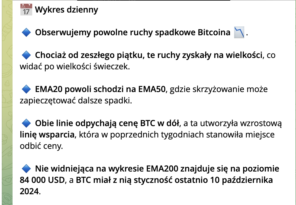 Warto podkreślić, że zamknięty kanał nie dostarcza sygnałów inwestycyjnych. Wszystkie publikowane analizy mają charakter edukacyjny i są przeznaczone do samodzielnego śledzenia trendów. Osoby zainteresowane dołączeniem mogą znaleźć szczegóły w otwartej grupie BeInCrypto Polska Społeczność na Telegramie w przypiętej wiadomości. Dodatkowo można również skontaktować się bezpośrednio z administratorem grupy – @CryptoCarlos16, aby uzyskać potrzebne informacje.