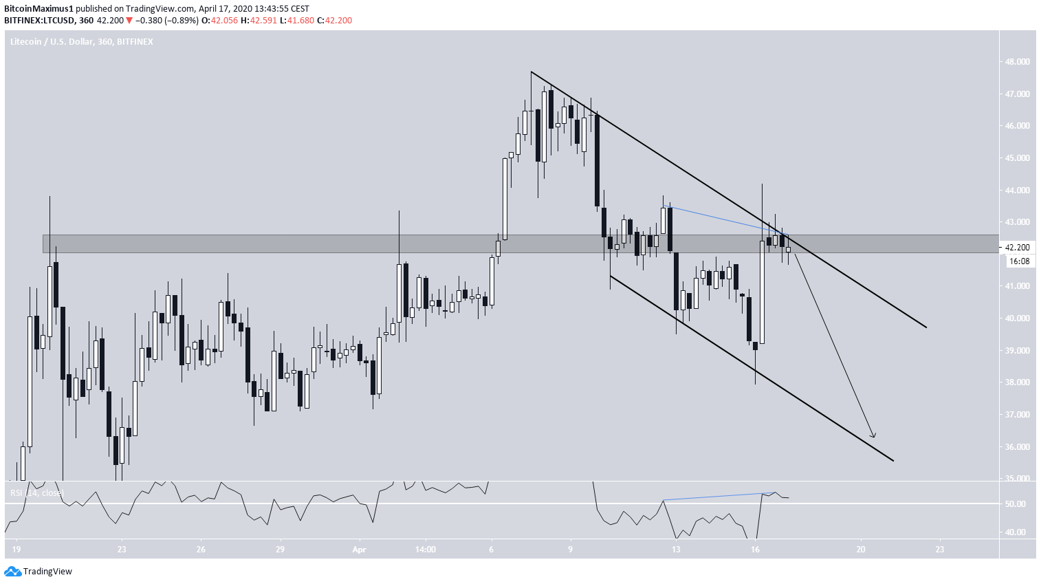 Cena LTC jest notowana w stromym, malejącym kanale i obowiązuje od 8 kwietnia. Cena potroiła zarówno opór, jak i linie wsparcia.