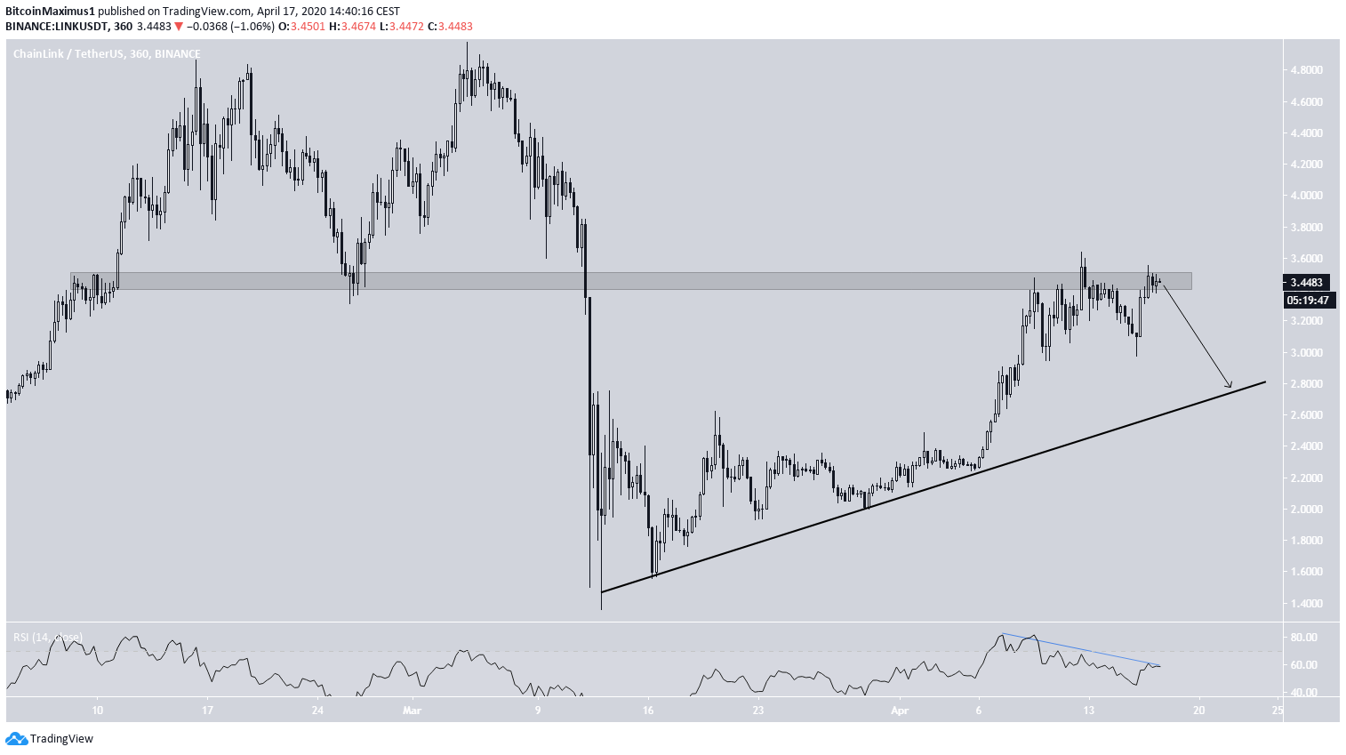 Cena LINK postępuje zgodnie z rosnącą linią wsparcia od 13 marca. Stopniowo rosła na zboczu do 6 kwietnia, kiedy to tempo wzrostu znacznie przyspieszyło.