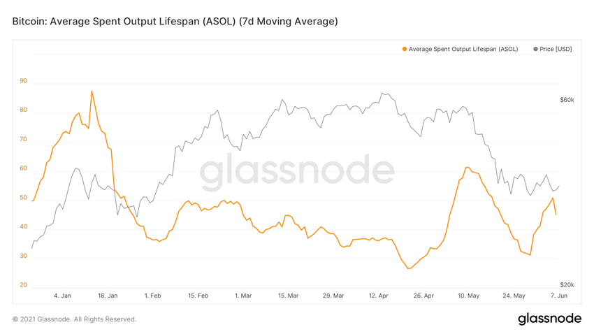 Dokładniej mówiąc, analizowane są wskaźniki Coin Days Destroyed (CDD) i Average Spent Output Lifespan (ASOL) w celu określenia wieku przenoszonych monet.