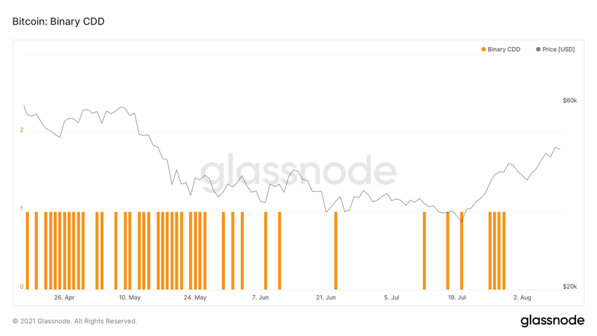 Kilka wersji CDD pokazuje wartości niższe od średniej. Jest to znak, że stare monety nie są przedmiotem transakcji. Dlatego też nie wydaje się, aby długoterminowi posiadacze opuszczali rynek podczas obecnego odbicia.
