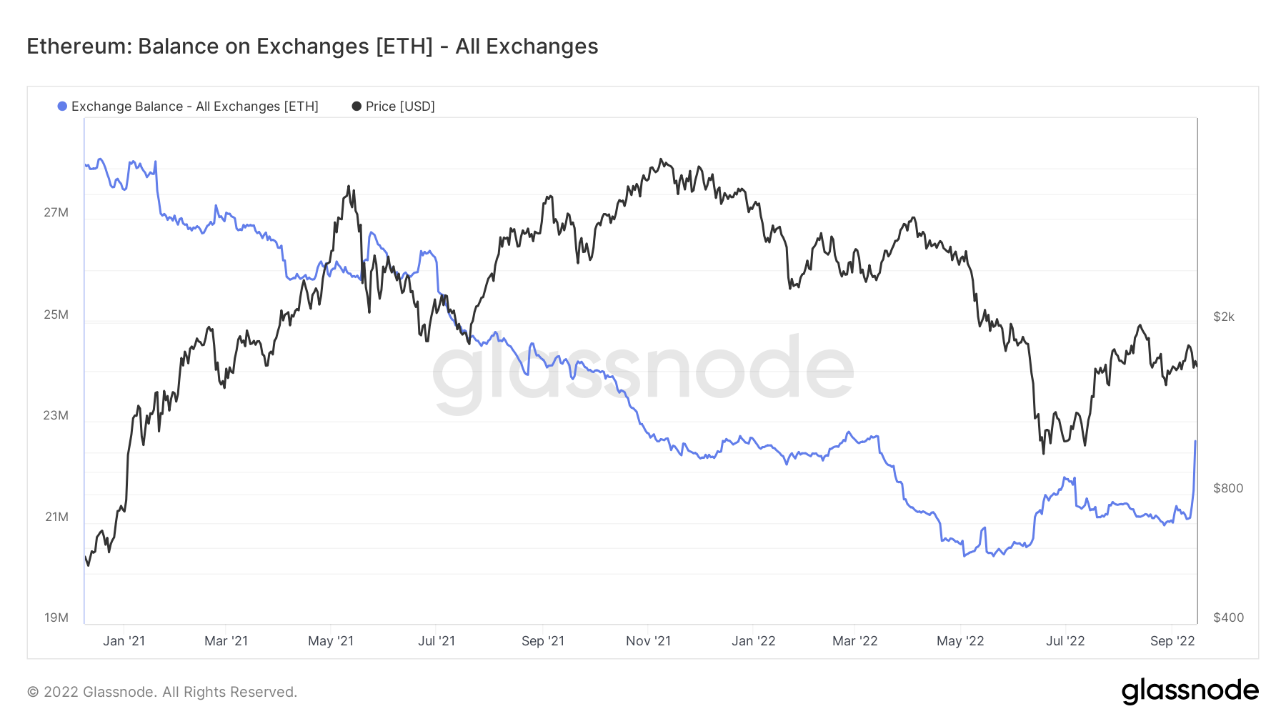 Sponsored SponsoredNaturalnie doprowadziło to do gwałtownego wzrostu ilości ETH na giełdach. Szybko wrócił on do poziomu z marca 2022 roku i aktualnie wynosi 22,614,536 ETH.
