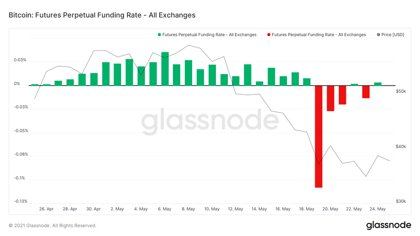 W dniu 19 maja stopy finansowania wyniosły minus 0,108% i utrzymywały się na ujemnym terytorium, aż do 24 maja, kiedy ponownie zmieniły swoją wartość na dodatnią. Wcześniej stopy finansowania były dodatnie przez prawie cały okres hossy.