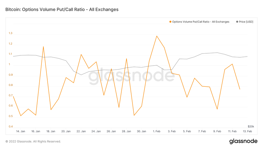 Interesującym spostrzeżeniem jest fakt, że wskaźnik put/call osiągnął szczyt na poziomie 1,28 w dniu 1 lutego. Potwierdza to wcześniejsze spostrzeżenie, że short squeeze z 3-4 lutego był spowodowany przez znaczną liczbę traderów, którzy zdecydowali się obstawiać przeciwnie do rynku, a następnie cena poruszała się przeciwko nim.
