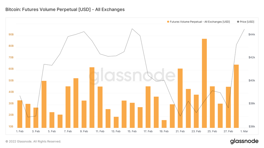 Ponadto wolumen na rynku kontraktów terminowych nie jest zbyt duży i pozostaje znacznie w tyle za wolumenem z dnia 24 lutego. W dniu 28 lutego łączny wolumen wyniósł 70 mld USD i był o ok. 30% niższy od 98 mld USD z 24 lutego.