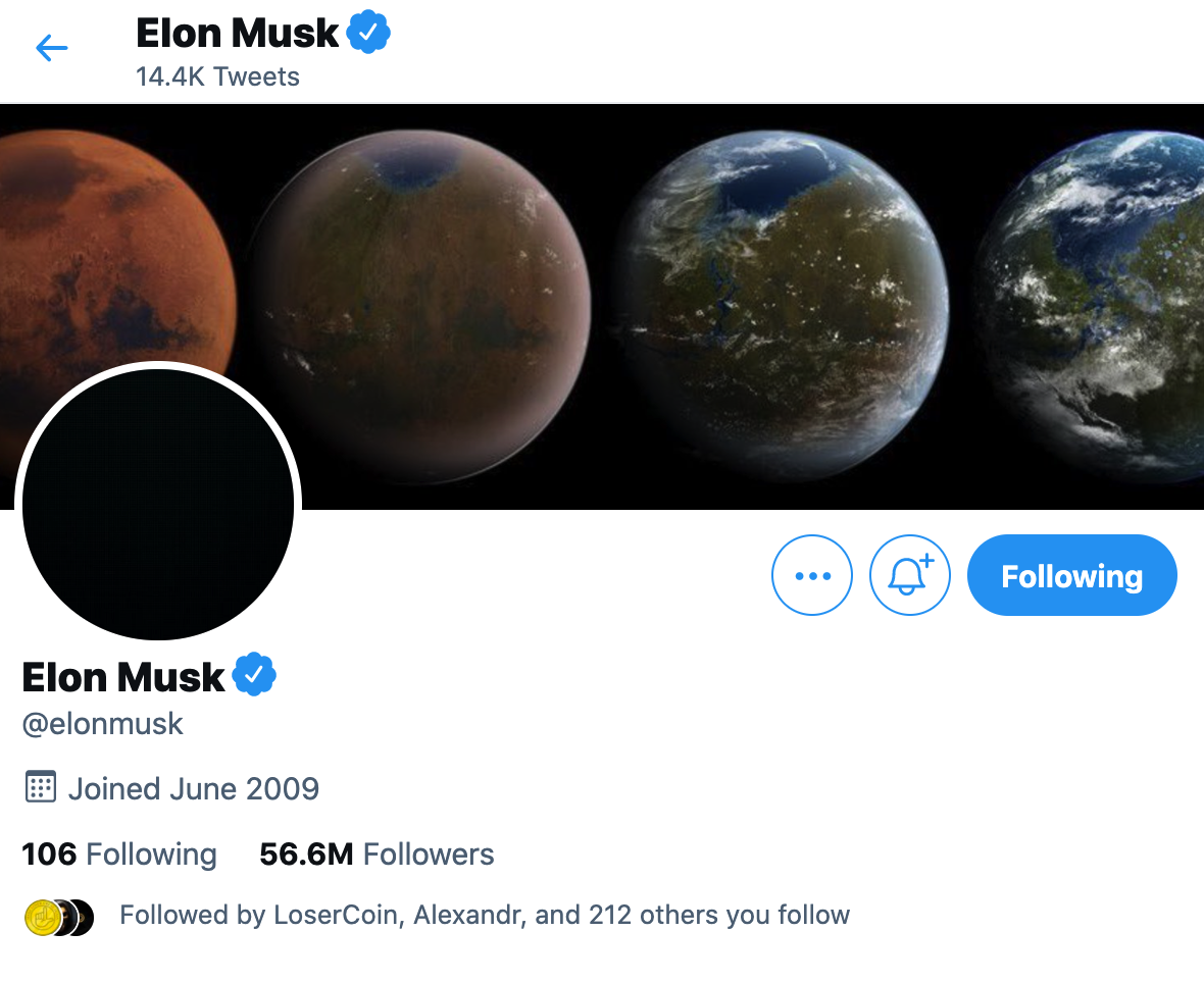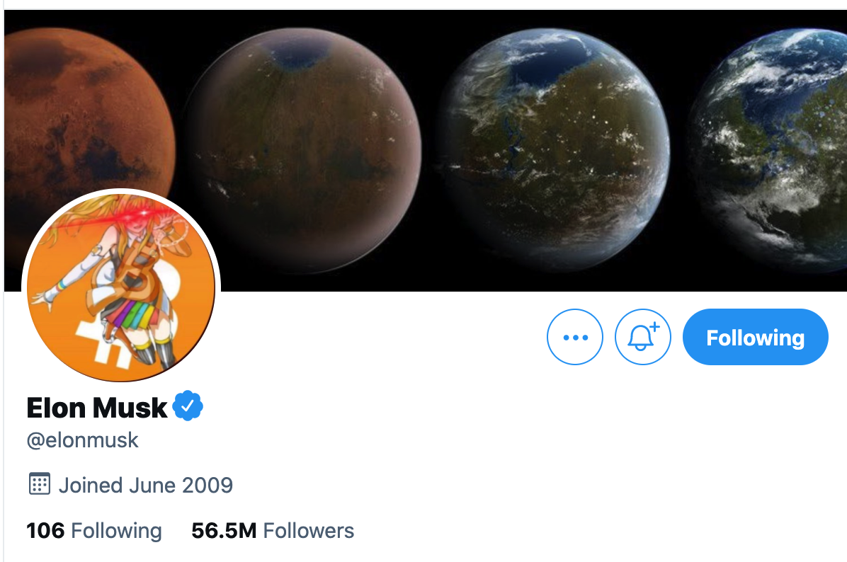 Potem CEO Tesli zmienił swoje zdjęcie profilowe na Twitterze, na Bitcoinową dziewczynę z laserowymi oczami. Od tego czasu jego Elon ponownie zmienił swoje zdjęcie profilowe, tak więc poniżej zamieszczamy ten ostatni obrazek:
