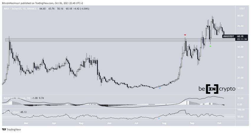 AVAX porusza się w dół od dnia 23 września, kiedy to osiągnął ATH na poziomie 79,80 USD.