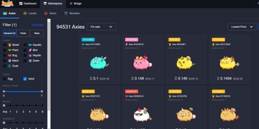 Twórcy zaprosili graczy do zbierania stworów Axie, każdego w formacie niewymiennego tokena (NFT). Można je wykorzystać do zarabiania pieniędzy.