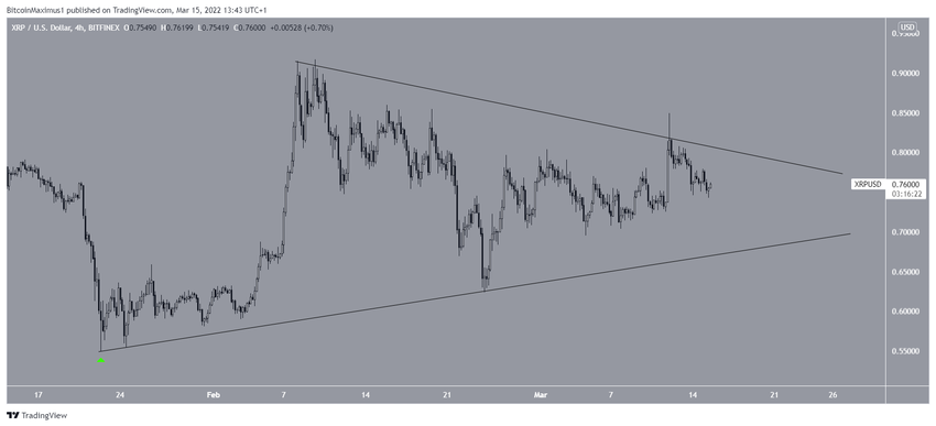 Chociaż nie potwierdzono jeszcze wystarczająco dużo razy linii oporu, możliwe jest, że XRP handluje wewnątrz trójkąta symetrycznego. Jest to uważane za neutralną formację, co oznacza, że zarówno załamanie, jak i wybicie pozostają możliwe.