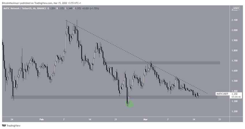 W dniu 24 lutego MATIC rozpoczął ruch w górę, odzyskując przy tym horyzontalne wsparcie na poziomie 1,35 USD. Było to niezwykle bycze wydarzenie, ponieważ wcześniej kurs załamał się poniżej tego wsparcia. Po takich odchyleniach zazwyczaj następuje znaczący ruch w przeciwnym kierunku.