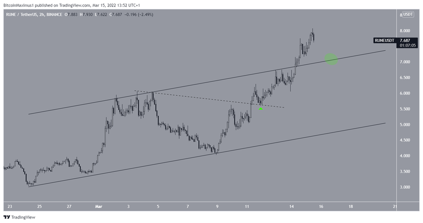 W dniu 11 marca RUNE wybił się z opadającej linii oporu i następnego dnia potwierdził ją jako wsparcie (zielona ikona).