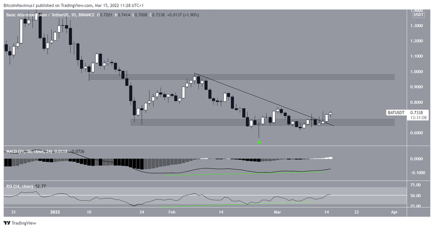 Przez cały ten okres, Basic Attention Token utworzył coś, co wygląda jak potrójne dno. Jest to bycza formacja odwrócenia trendu. Ponadto, 13 marca nastąpiło załamanie z opadającej linii oporu.
