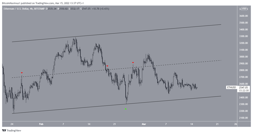 Od 24 stycznia ETH notowany jest wewnątrz równoległego kanału zwyżkującego. Takie kanały uważa się za ruchy korekcyjne, co oznacza, że najbardziej prawdopodobnym scenariuszem byłoby wybicie z niego.