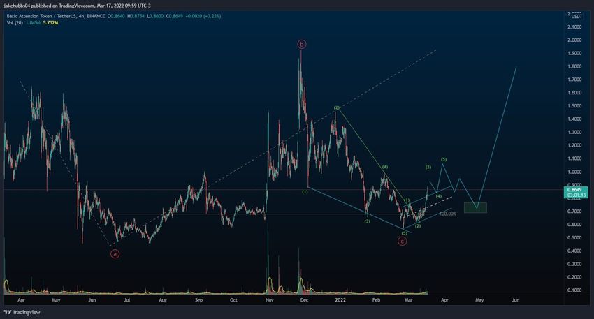 Trader kryptowalutowy @TheTradingHubb opublikował na Twitterze wykres Basic Attention Token i zasugerował, że korekta mogła się już zakończona.