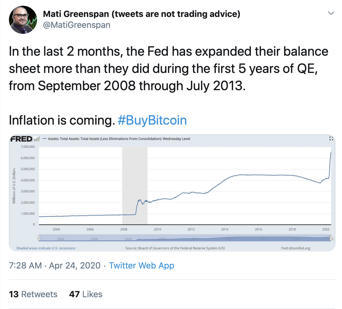 Obecny skok w bilansie Fedu nie zwolnił od marca. W rzeczywistości ciągle przyśpiesza, a konsekwencjami może być inflacja w przeciwieństwie do tego, co widzieliśmy wcześniej. Tak napisał ostatnio Mati Greenspan (@MatiGreenspan), założyciel Quantum Economics.