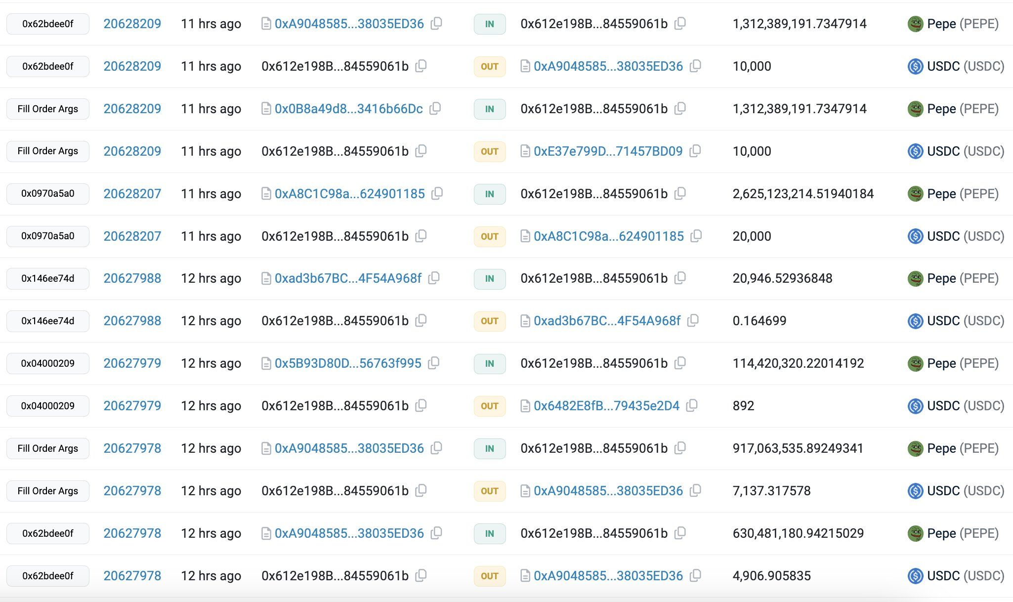 Zgodnie z danymi Lookonchain, portfel powiązany z firmą zarządzającą inwestycjami w kryptoaktywa Ceffu kupił 1,48 biliona tokenów PEPE o wartości 11,6 miliona USD. To daje łącznie prawie 2 biliony zgromadzonych tokenów w ciągu jednego dnia.