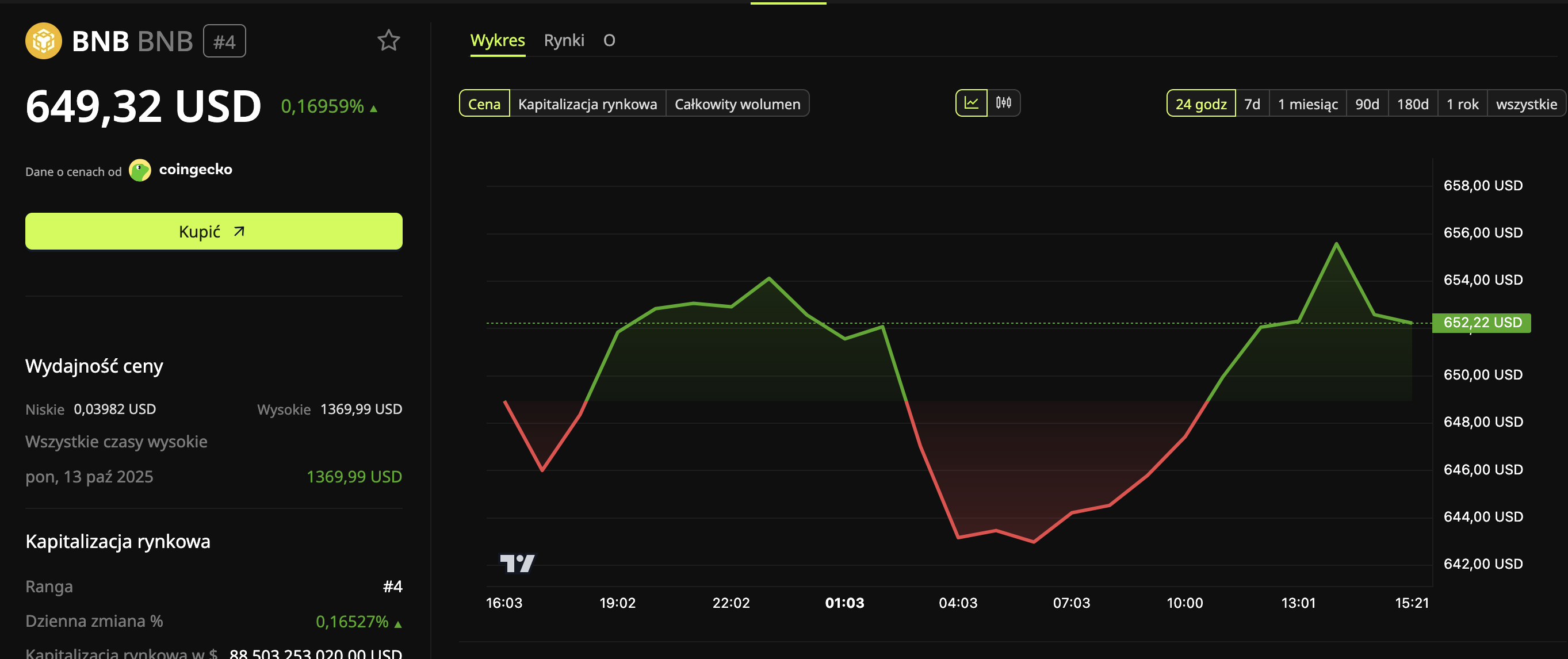 Mimo tych informacji cena tokena BNB od wzrosła jedynie nieznacznie o 0,65%. W chwili pisania tego tekstu wynosiła 649,32 USD.