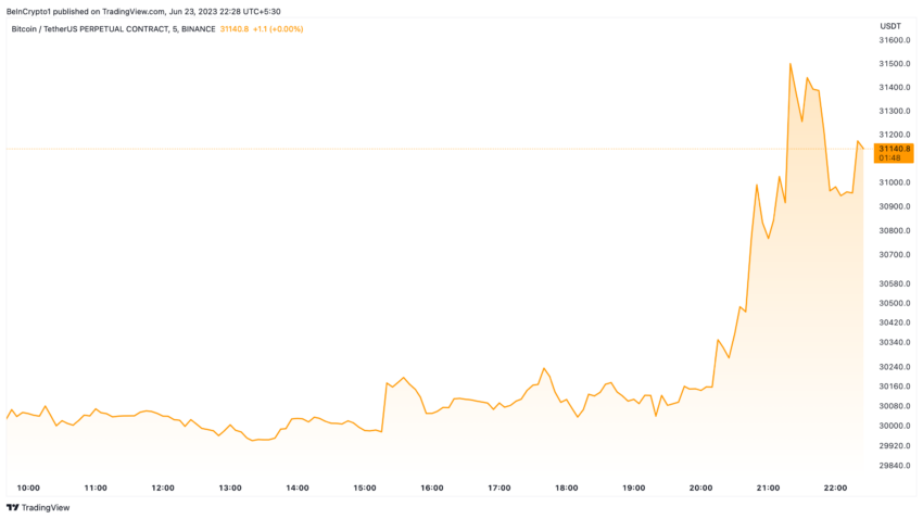 Ten przełomowy moment nastąpił, gdy wartość Bitcoina przekroczyła kamień milowy 31 000 USD. Wzrost ten pobudziły duże tradycyjne firmy inwestycyjne, tak jak BlackRock, składające wnioski o fundusze ETF na Bitcoina.