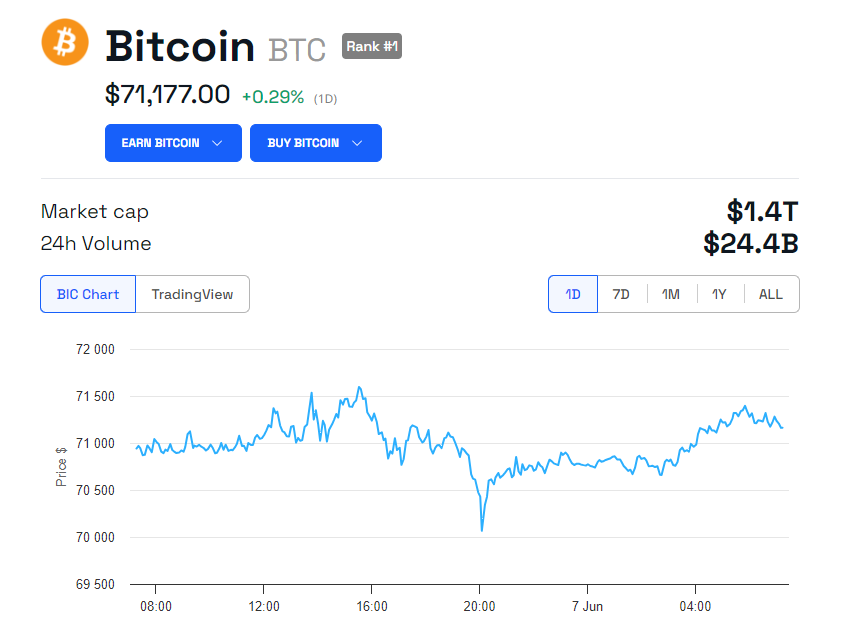 Bitcoin (BTC) przeżywa ostatnio dynamiczny wzrost i przekroczył już barierę 71 000 USD. Dzieje się to dzięki pozytywnym wskaźnikom makroekonomicznym i rosnącemu zainteresowaniu inwestorów instytucjonalnych.