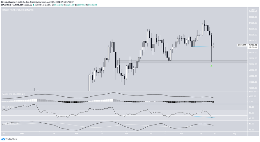 Jednak wkrótce potem zaczął spadać, a tempo spadku przyspieszyło w dniu 18 kwietnia. BTC osiągnął dołek na 50 931 USD w tym samym dniu.