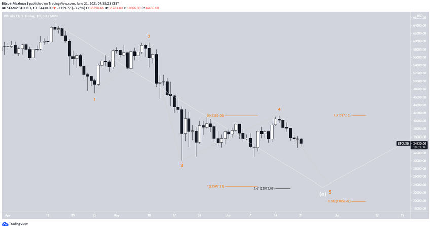 Chociaż jeszcze bardziej krótkoterminowy układ fal nie jest całkowicie jasny, to ruch spadkowy wygląda na impulsywny. Ponadto, ruch w górę, który doprowadził do szczytu na 41 341 USD wygląda na korekcyjny.