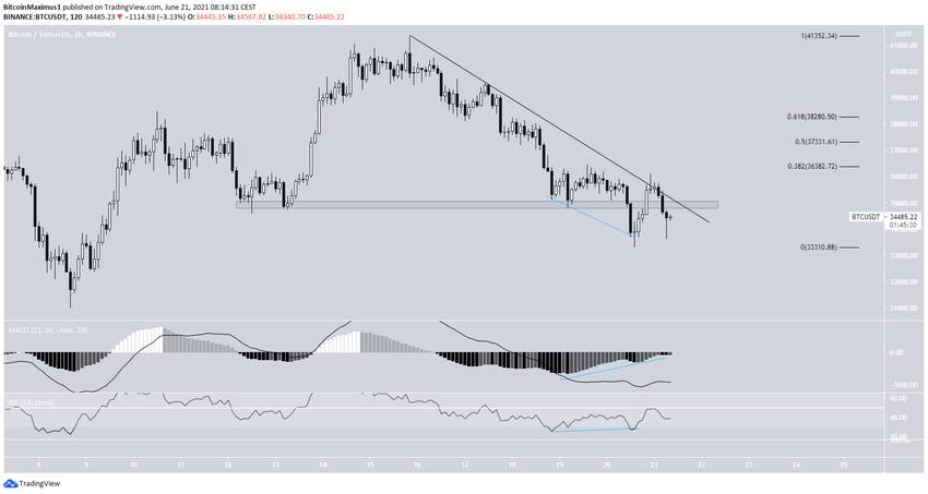 Jednakże, aktualnie napotyka silny opór z obszaru 35 000 USD w postaci zarówno opadającej linii oporu, jak i horyzontalnego obszaru oporu.