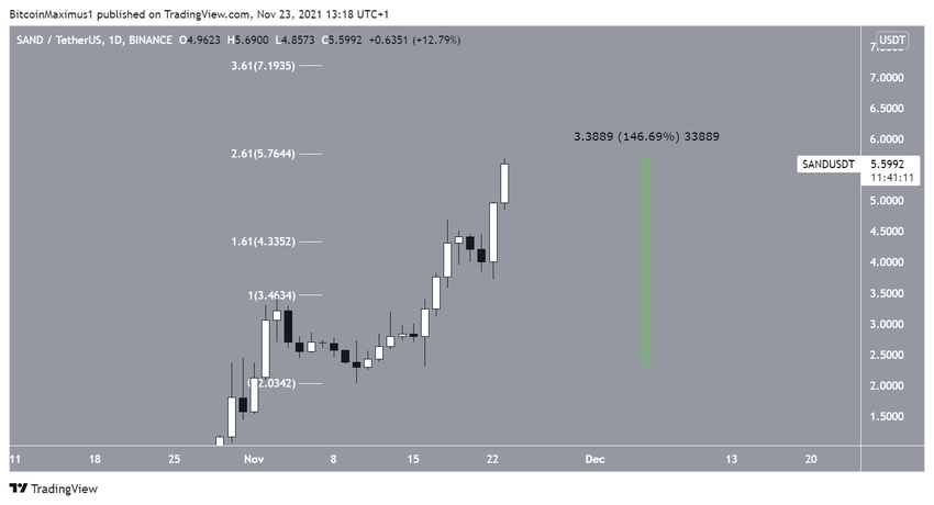The Sandbox (SAND) rośnie w przyspieszonym tempie od dnia 16 listopada. Do tej pory kryptowaluta przesunęła się w górę o 150%.