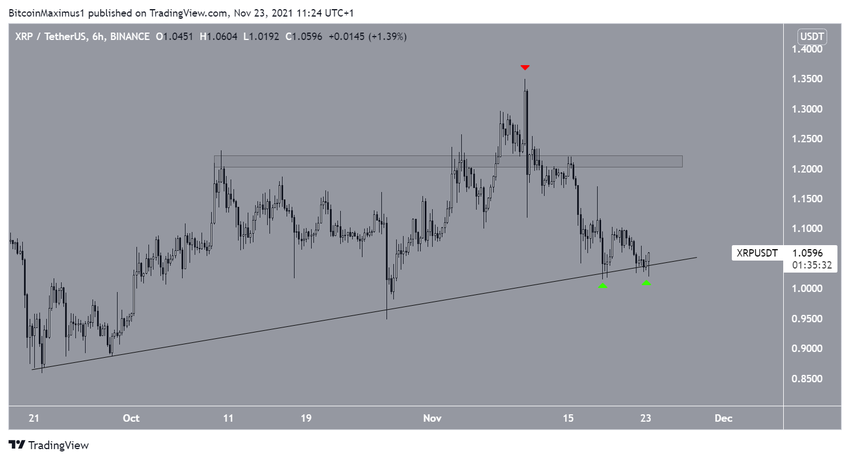 XRP spada od dnia 10 listopada, kiedy to odchyliło się powyżej obszaru oporu na 1,215 USD. Spadek doprowadził do dołka na poziomie 1,01 USD w dniu 18 listopada.