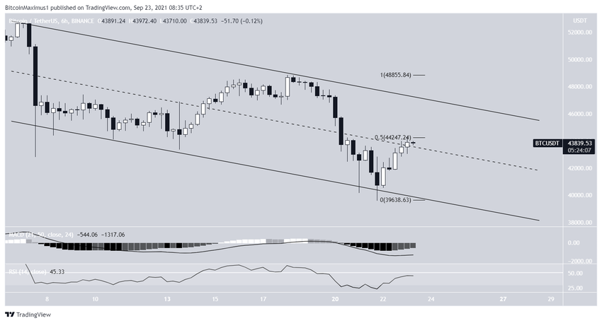 W dniu 21 września Bitcoin dotarł do linii wsparcia kanału i odbił się. Obecnie znajduje się w środku kanału, który zbiega się z obszarem oporu na 44 250 USD. Jest to obszar oporu przy zniesieniu 0,5 Fib.