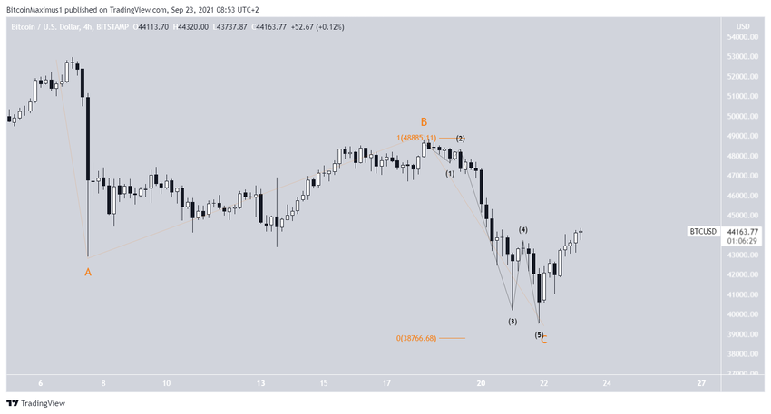 Najbardziej prawdopodobny układ fal sugeruje, że zakończony spadek BTC był częścią struktury korekcyjnej A-B-C (kolor pomarańczowy).