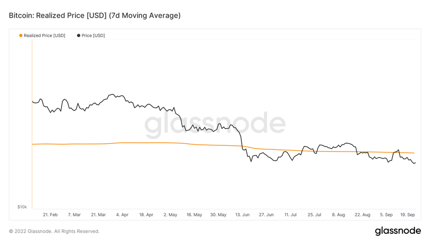 Sponsored#Bitcoin back below its average on-chain cost basis, otherwise known as realized price, which currently is ~21k.