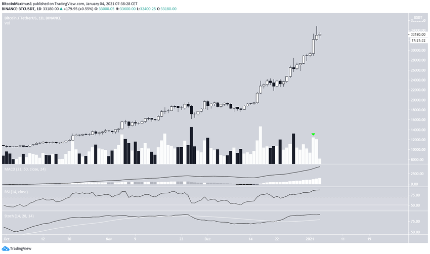 Bitcoin (BTC) osiągnął kolejny rekord wszech czasów w dniu 3 stycznia, tym razem wzrastając do 34 778 USD.